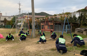 この度、11月8日(土)に小学校のグランド整備ボランティアを行いました。